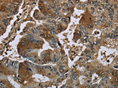 The image on the left is immunohistochemistry of paraffin-embedded Human liver cancer tissue using CSB-PA748508(GSTO1 Antibody) at dilution 1/60, on the right is treated with fusion protein. (Original magnification: ×200)