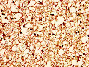 • IHC image of CSB-PA010097OA142nphHU diluted at 1:50 and staining in paraffin-embedded human brain tissue performed on a Leica BondTM system. After dewaxing and hydration, antigen retrieval was mediated by high pressure in a citrate buffer (pH 6.0). Section was blocked with 10% normal goat serum 30min at RT. Then primary antibody (1% BSA) was incubated at 4°C overnight. The primary is detected by a biotinylated secondary antibody and visualized using an HRP conjugated SP system.