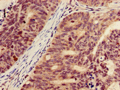 Immunohistochemistry of paraffin-embedded human colon cancer using CSB-PA010418OA18nacHU at dilution of 1:100