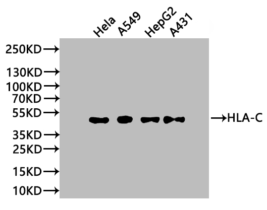 Positive WB detected in: Hela whole cell lysate, A549 whole cell lysate, HepG2 whole cell lysate, A431 whole cell lysate