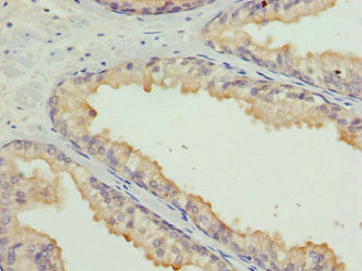• Immunohistochemistry of paraffin-embedded human prostate cancer using CSB-PA01604A0Rb at dilution of 1:100