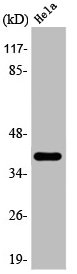 • Western Blot analysis of MCF7 HELA cells using 3β-HSD7 Polyclonal Antibody