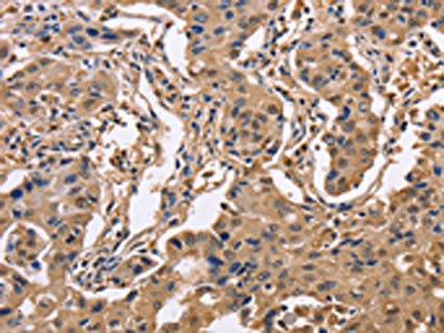 • The image on the left is immunohistochemistry of paraffin-embedded Human lung cancer tissue using CSB-PA826954(IDH1 Antibody) at dilution 1/50, on the right is treated with fusion protein. (Original magnification: ×200)