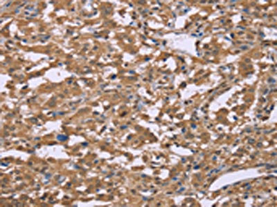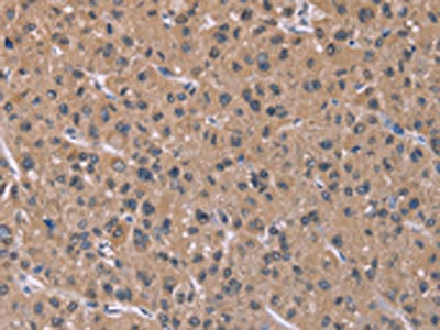 • The image on the left is immunohistochemistry of paraffin-embedded Human liver cancer tissue using CSB-PA048892(IFNA2 Antibody) at dilution 1/40, on the right is treated with synthetic peptide. (Original magnification: ×200)