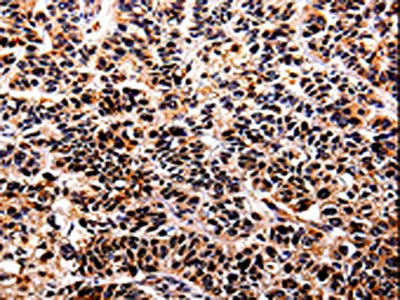 • The image on the left is immunohistochemistry of paraffin-embedded Human lung cancer tissue using CSB-PA062287(IL10RA Antibody) at dilution 1/30, on the right is treated with fusion protein. (Original magnification: ×200)