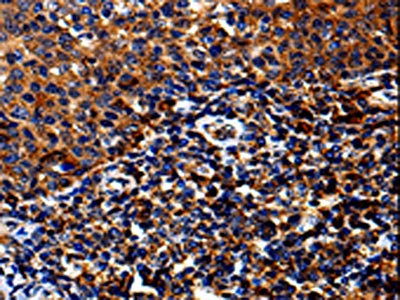 • The image on the left is immunohistochemistry of paraffin-embedded Human tosil tissue using CSB-PA058807(IL13RA1 Antibody) at dilution 1/50, on the right is treated with fusion protein. (Original magnification: ×200)
