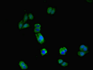 • Immunofluorescent analysis of HepG2 cells using CSB-PA12929A0Rb at dilution of 1:100 and Alexa Fluor 488-congugated AffiniPure Goat Anti-Rabbit IgG(H+L)
