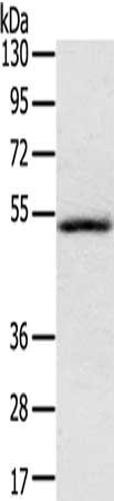 • Gel: 8%SDS-PAGE, Lysate: 40 μg, Lane: Human normal liver tissue, Primary antibody: CSB-PA121041(IL17RB Antibody) at dilution 1/200, Secondary antibody: Goat anti rabbit IgG at 1/8000 dilution, Exposure time: 1 minute