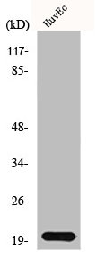 • Western Blot analysis of HuvEc cells using IL-21 Polyclonal Antibody
