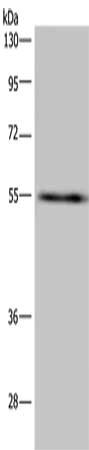 • Gel: 8%SDS-PAGE, Lysate: 40 μg, Lane: A549 cells, Primary antibody: CSB-PA914299(IMPDH2 Antibody) at dilution 1/650, Secondary antibody: Goat anti rabbit IgG at 1/8000 dilution, Exposure time: 3 minutes