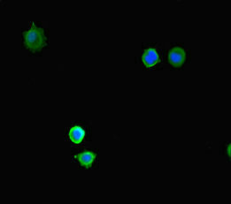 Immunofluorescent analysis of MCF-7 cells using CSB-PA012137LA01HU at dilution of 1:100 and Alexa Fluor 488-congugated AffiniPure Goat Anti-Rabbit IgG(H+L)