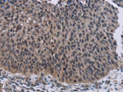 • The image on the left is immunohistochemistry of paraffin-embedded Human prostate cancer tissue using CSB-PA953461(KDM4D Antibody) at dilution 1/50, on the right is treated with fusion protein. (Original magnification: ×200)