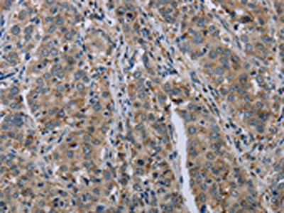 • The image on the left is immunohistochemistry of paraffin-embedded Human liver cancer tissue using CSB-PA834141(KISS1R Antibody) at dilution 1/25, on the right is treated with synthetic peptide. (Original magnification: ×200)