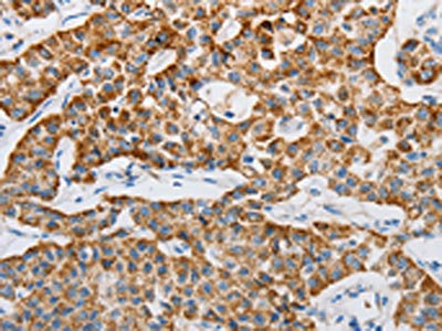 • The image on the left is immunohistochemistry of paraffin-embedded Human lung cancer tissue using CSB-PA246788(MAP3K5 Antibody) at dilution 1/20, on the right is treated with synthetic peptide. (Original magnification: ×200)