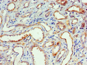 組織特異性:Expressed in testes, pancreas, small intestine, lung and kidney. Abundant in macrophages, also present in neutrophils, CD4+ T-cells, and endothelial cells.