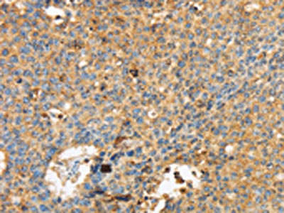 • The image on the left is immunohistochemistry of paraffin-embedded Human lung cancer tissue using CSB-PA180349(MAPK6 Antibody) at dilution 1/40, on the right is treated with synthetic peptide. (Original magnification: ×200)