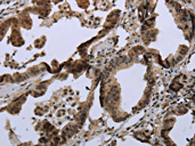 • The image on the left is immunohistochemistry of paraffin-embedded Human colon cancer tissue using CSB-PA557048(MAPKAPK2 Antibody) at dilution 1/20, on the right is treated with synthetic peptide. (Original magnification: ×200)