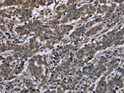 • The image on the left is immunohistochemistry of paraffin-embedded Human liver cancer tissue using CSB-PA557048(MAPKAPK2 Antibody) at dilution 1/20, on the right is treated with synthetic peptide. (Original magnification: ×200)