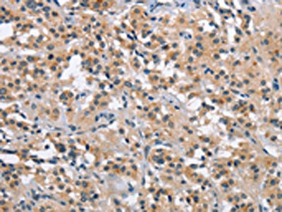 The image on the left is immunohistochemistry of paraffin-embedded Human thyroid cancer tissue using CSB-PA029620(MAPT Antibody) at dilution 1/40, on the right is treated with synthetic peptide. (Original magnification: ×200)