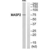 • Western blot analysis of extracts from K562 cell, using MASP2 antibody.