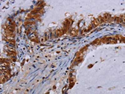 The image on the left is immunohistochemistry of paraffin-embedded Human esophagus cancer tissue using CSB-PA440474(MECP2 Antibody) at dilution 1/60, on the right is treated with fusion protein. (Original magnification: ×200)