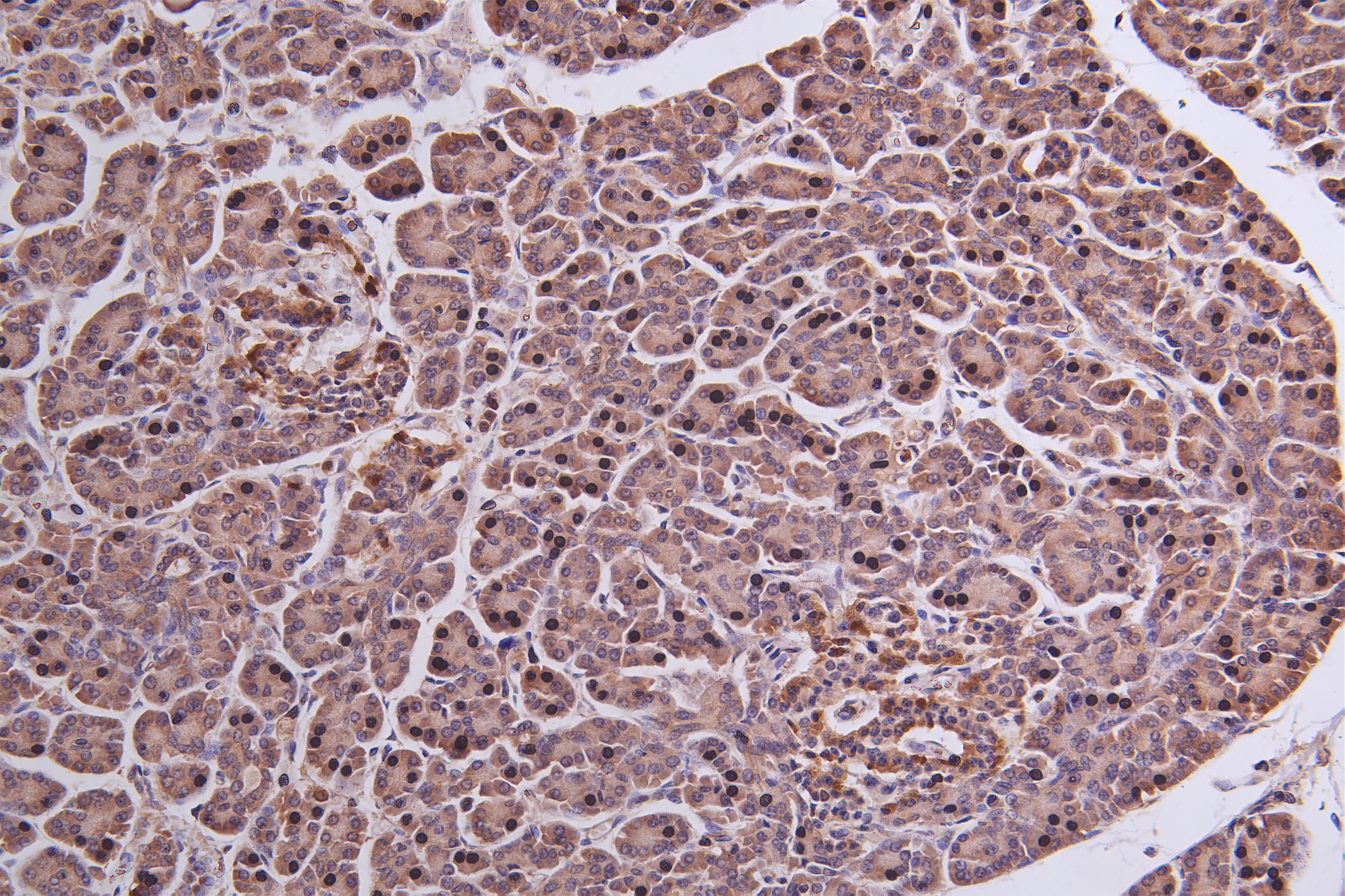 Immunohistochemistry of paraffin-embedded human Pancreatic tissue using CSB-PA704858ESR1HU at dilution of 1:50