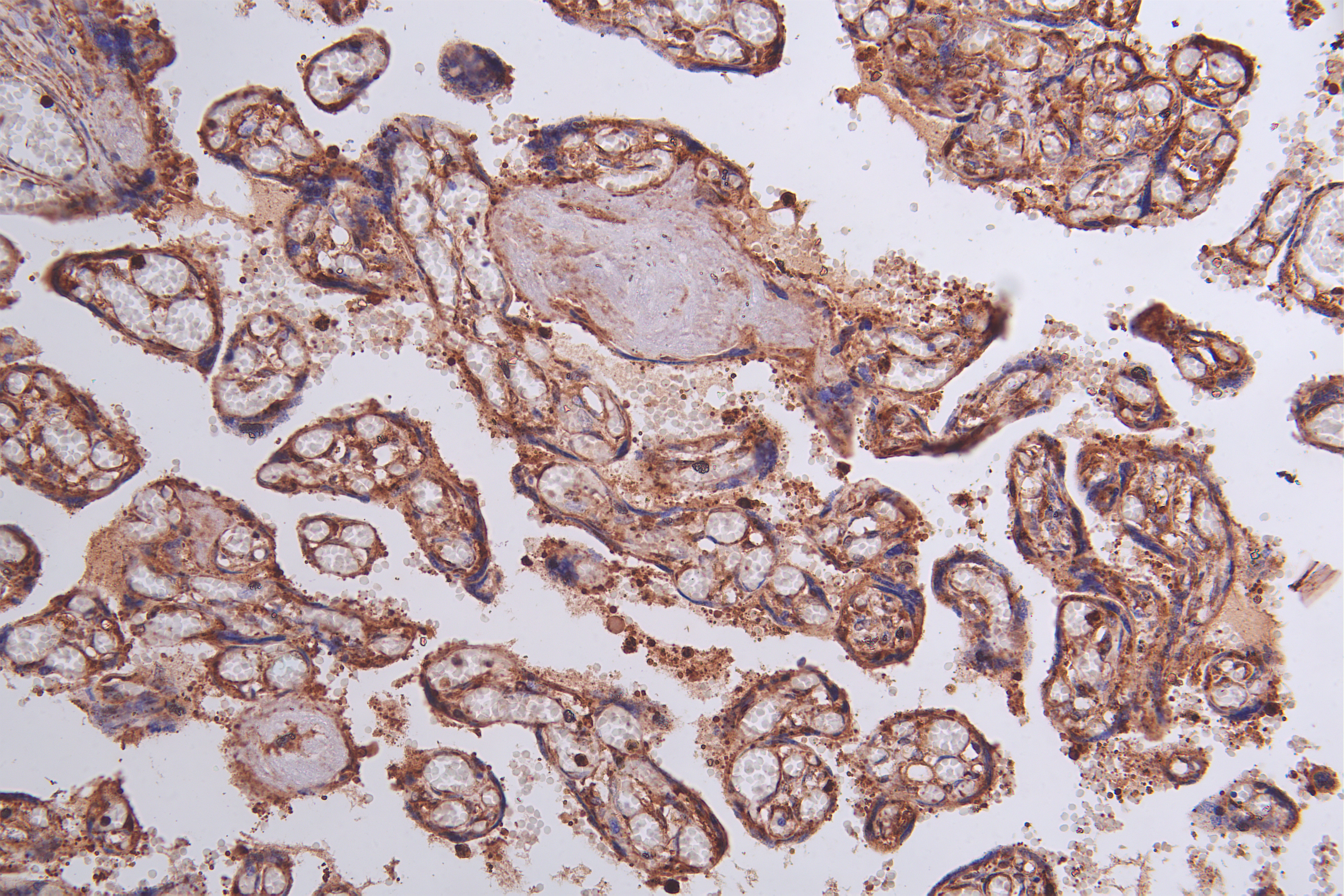 Immunohistochemistry of paraffin-embedded human Placental tissue using CSB-PA704858ESR1HU at dilution of 1:50