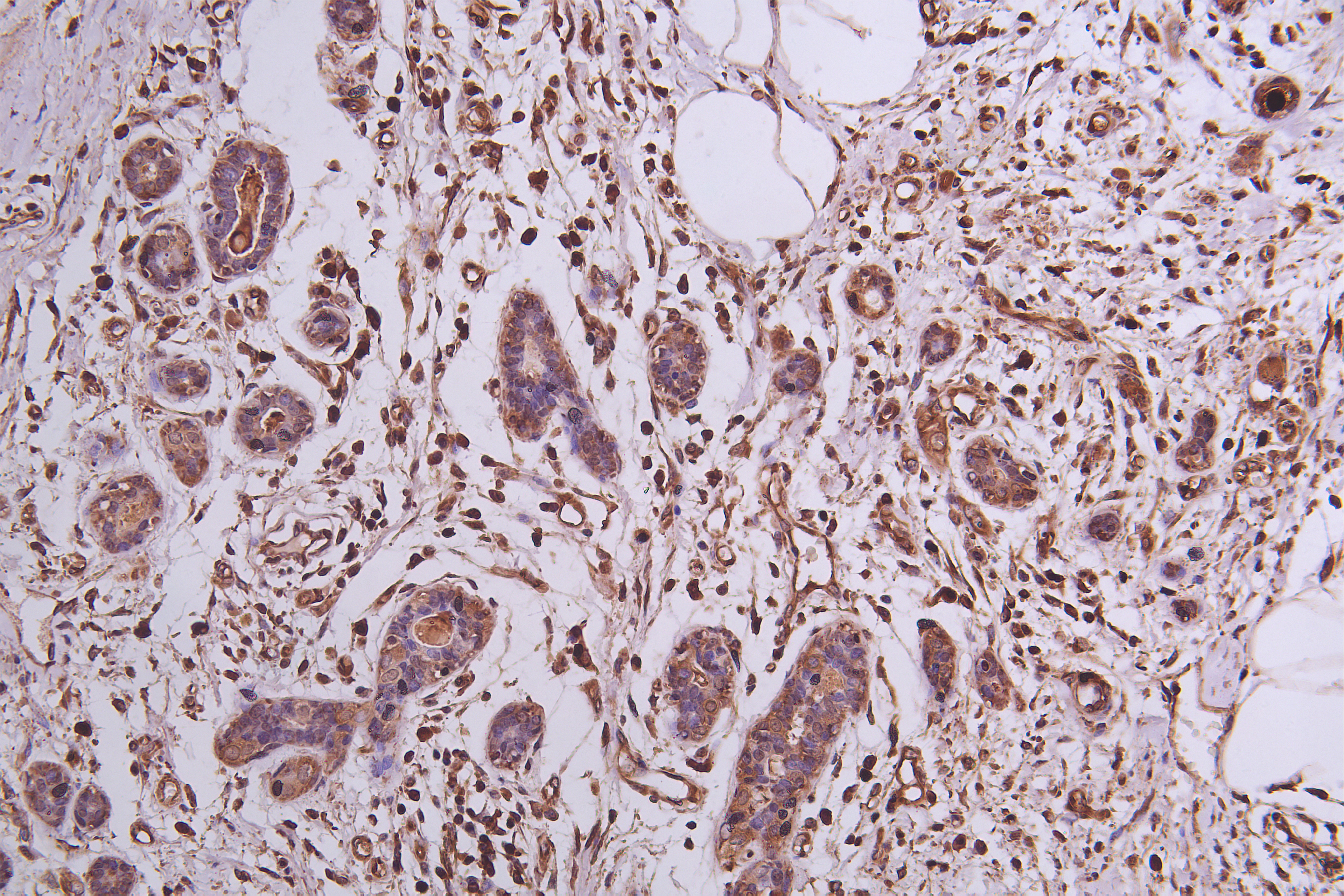 Immunohistochemistry of paraffin-embedded human Breast cancer using CSB-PA704858ESR1HU at dilution of 1:50