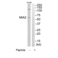 • Western blot analysis of extracts from HuvEc cells, using MIA2 antibody.