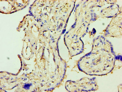 Immunohistochemistry of paraffin-embedded human placenta tissue using CSB-PA07449A0Rb at dilution of 1:100