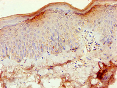 Immunohistochemistry of paraffin-embedded human skin tissue using CSB-PA07449A0Rb at dilution of 1:100