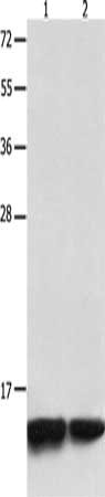 • Gel: 12%SDS-PAGE, Lysate: 40 μg, Lane 1-2: Jurkat cells, 231 cells, Primary antibody: CSB-PA926395(MYL9 Antibody) at dilution 1/1500, Secondary antibody: Goat anti rabbit IgG at 1/8000 dilution, Exposure time: 30 seconds