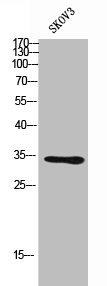 • Western Blot analysis of SKOV3 cells using NKp46 Polyclonal Antibody