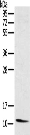 • Gel: 10%SDS-PAGE, Lysate: 40 μg, Lane: Mouse heart tissue, Primary antibody: CSB-PA111379(NDUFA3 Antibody) at dilution 1/250, Secondary antibody: Goat anti rabbit IgG at 1/8000 dilution, Exposure time: 4 minutes