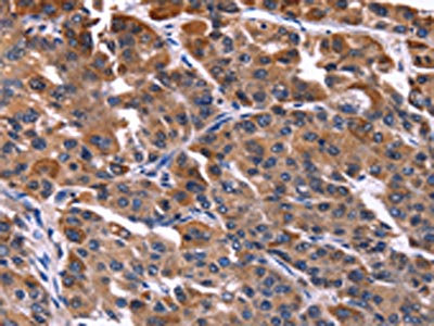 • The image on the left is immunohistochemistry of paraffin-embedded Human liver cancer tissue using CSB-PA988942(NFATC3 Antibody) at dilution 1/50, on the right is treated with fusion protein. (Original magnification: ×200)