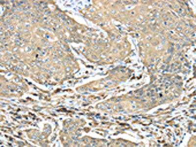 The image on the left is immunohistochemistry of paraffin-embedded Human cervical cancer tissue using CSB-PA578283(NME2 Antibody) at dilution 1/40, on the right is treated with synthetic peptide. (Original magnification: ×200)