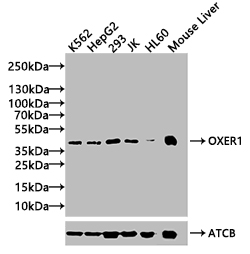 Positive WB detected in: K562 whole cell lysate(20μg), HepG2 whole cell lysate(20μg), 293 whole cell lysate(20μg), JK whole cell lysate(20μg), HL60 whole cell lysate(20μg), Mouse Liver tissue lysate(20μg)