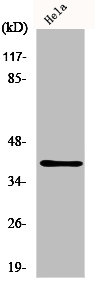 • Western Blot analysis of HeLa cells using P2Y4 Polyclonal Antibody