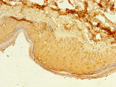Immunohistochemistry of paraffin-embedded human skin tissue using CSB-PA017489HA01HU at dilution of 1:100