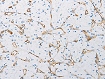 • The image on the left is immunohistochemistry of paraffin-embedded Human renal cancer tissue using CSB-PA022257(PECAM1 Antibody) at dilution 1/25, on the right is treated with synthetic peptide. (Original magnification: ×200)