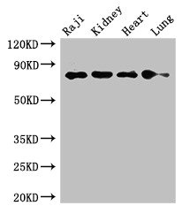 Positive WB detected in: Raji whole cell lysate, Mouse kidney tissue, Rat heart tissue, Rat lung tissue