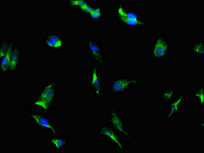 • Immunofluorescent analysis of Hela cells using CSB-PA839338LA01HU at dilution of 1: 100 and Alexa Fluor 488-congugated AffiniPure Goat Anti-Rabbit IgG(H+L)