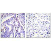 Immunohistochemistry analysis of paraffin-embedded human lung carcinoma tissue using PIAS4 antibody.
