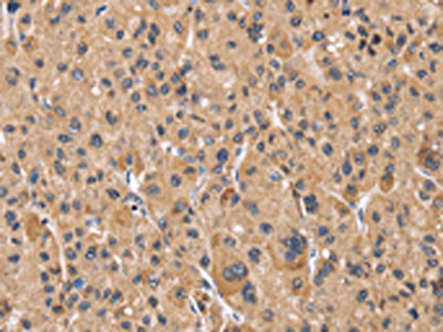 The image on the left is immunohistochemistry of paraffin-embedded Human liver cancer tissue using CSB-PA903914(PPIF Antibody) at dilution 1/60, on the right is treated with fusion protein. (Original magnification: ×200)