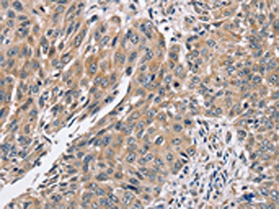 The image on the left is immunohistochemistry of paraffin-embedded Human liver cancer tissue using CSB-PA188909(PPP1CC Antibody) at dilution 1/40, on the right is treated with synthetic peptide. (Original magnification: ×200)