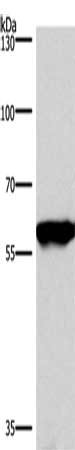 Gel: 6%SDS-PAGE, Lysate: 40 μg, Lane: Mouse brain tissue, Primary antibody: CSB-PA943107(PPP3CA Antibody) at dilution 1/900, Secondary antibody: Goat anti rabbit IgG at 1/8000 dilution, Exposure time: 1 second