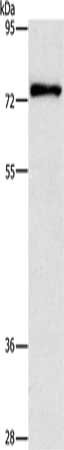 Gel: 6%SDS-PAGE, Lysate: 40 μg, Lane: Mouse brain tissue, Primary antibody: CSB-PA282230(PRKCD Antibody) at dilution 1/350, Secondary antibody: Goat anti rabbit IgG at 1/8000 dilution, Exposure time: 20 seconds
