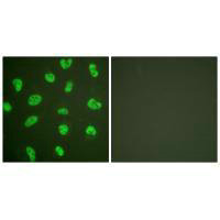 Immunofluorescence analysis of HeLa cells, treated with Forskolin (40nM, 30mins), using DNA-PK antibody.
