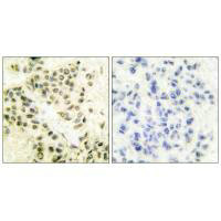 Immunohistochemical analysis of paraffin-embedded human breast carcinoma tissue using DNA-PK antibody.