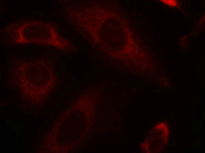 • Immunofluorescence staining of methanol-fixed Hela cells using SHP-2(Ab-542) Antibody.